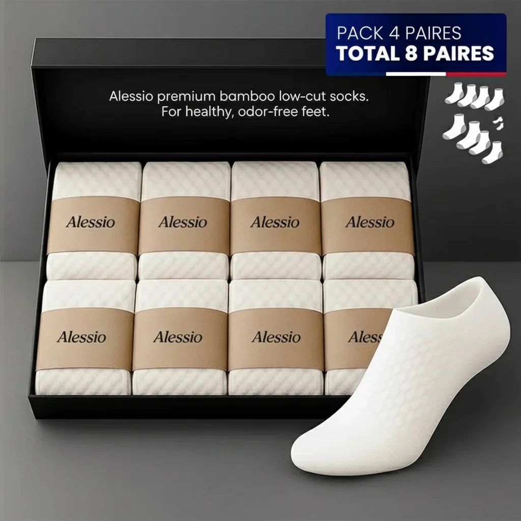 Marre des mauvaises odeurs qui gâchent vos journées ? Nos chaussettes Alessio en bambou révolutionnent votre quotidien. Restez frais et confiant, même après 12h. Profitez vite de 4 paires offertes en plus !
